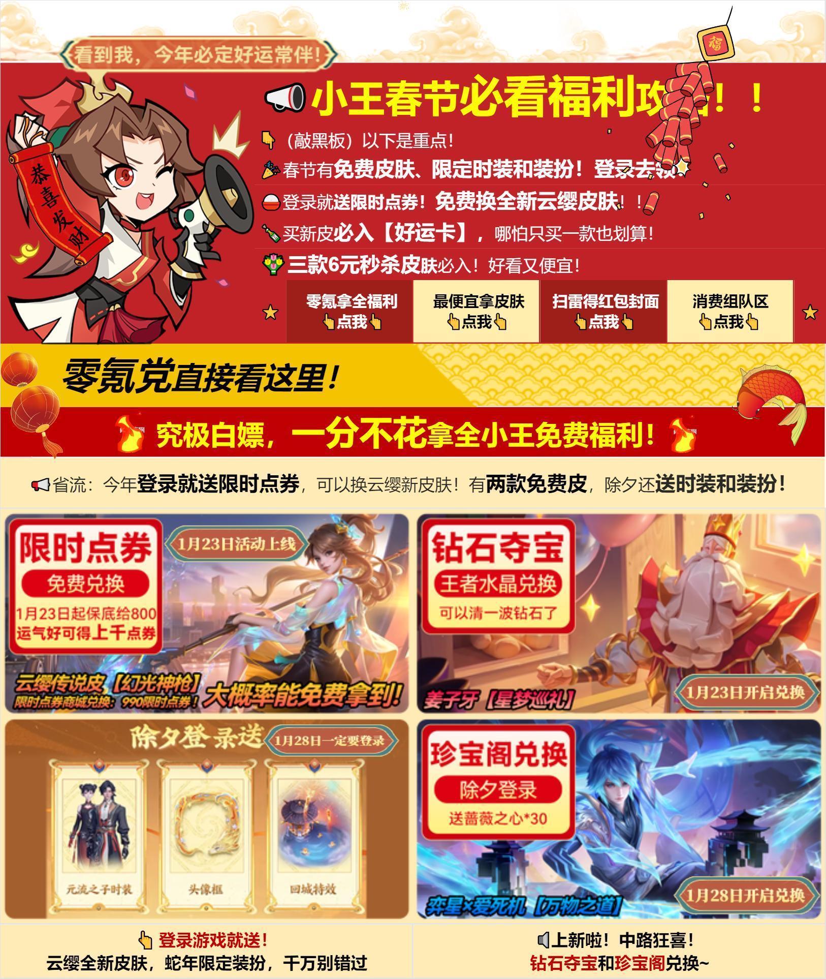 以下内容均来自【王者蛇年春节白嫖攻略】在线文档,评论区附链接。
